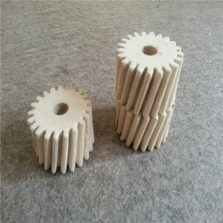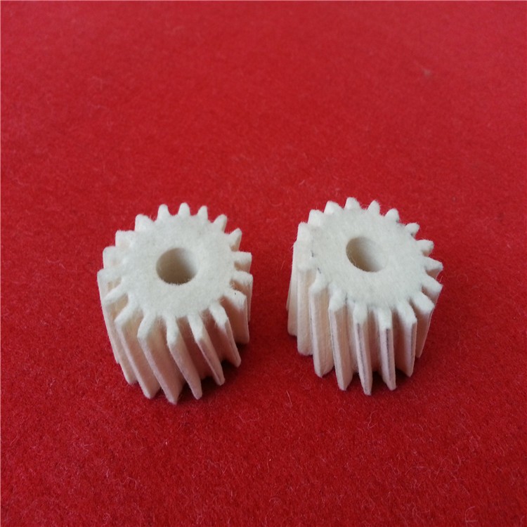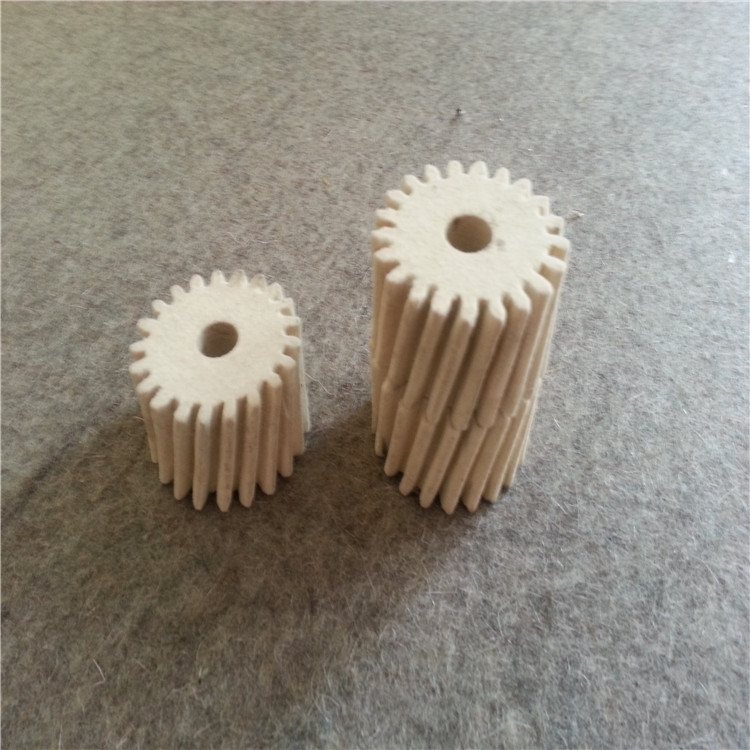 羊毛毡齿轮的类型:按齿轮传动轴线的相互位置可分为三类——平行轴线传动、相交轴线传动和交错轴线传动。行轴线传动的齿轮有直齿圆柱齿轮、斜齿圆柱齿轮、人字齿圆柱齿轮。相交轴线传动齿轮有直齿圆锥齿轮、斜齿圆锥齿轮、螺旋齿圆锥齿轮。交错轴线传动齿轮有双曲线齿轮、蜗轮传动齿轮、螺旋齿圆柱齿轮。